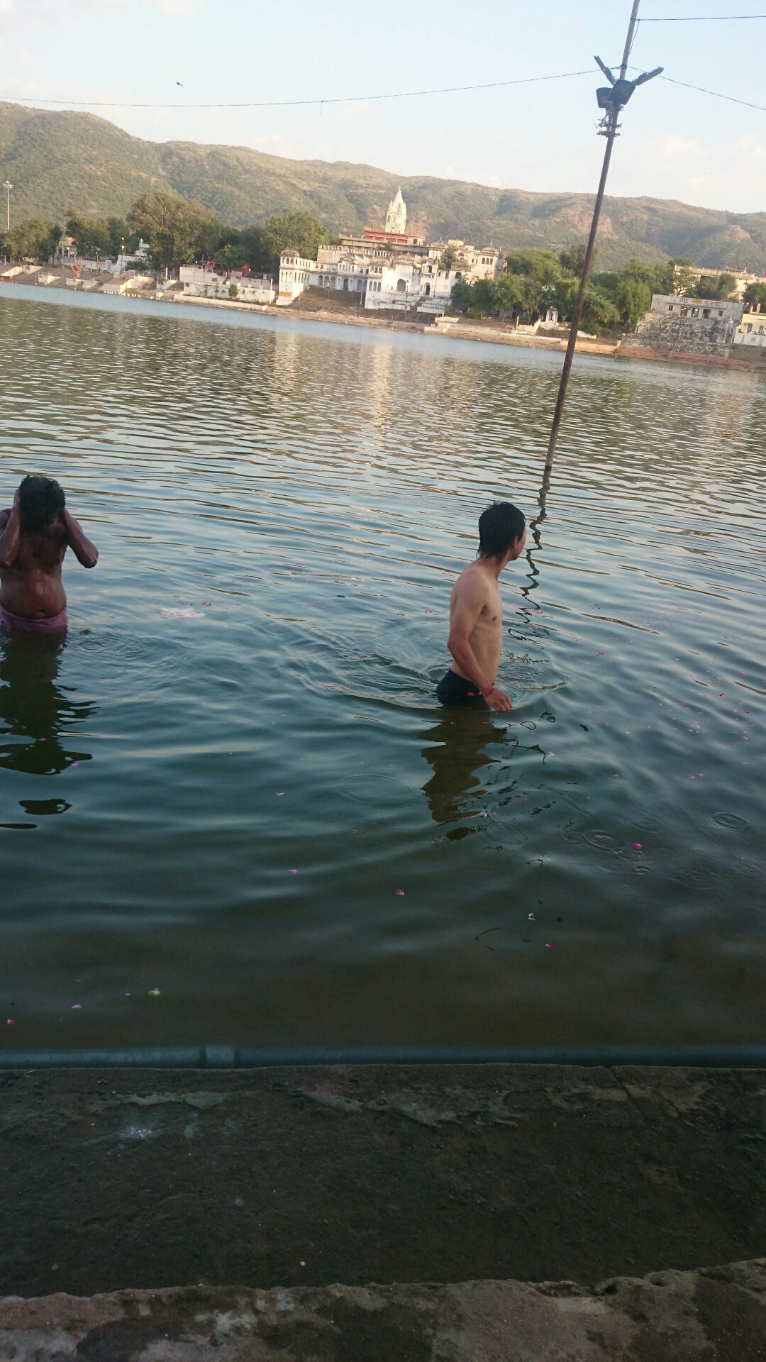 ジャイサルメールからデリーに戻る途中に、聖地プシュカルへ立ち寄りました。町の中心には大きな湖があり、巡礼に訪れた人々はここで沐浴をして、創造神プラーフマーに祈りを捧げます。