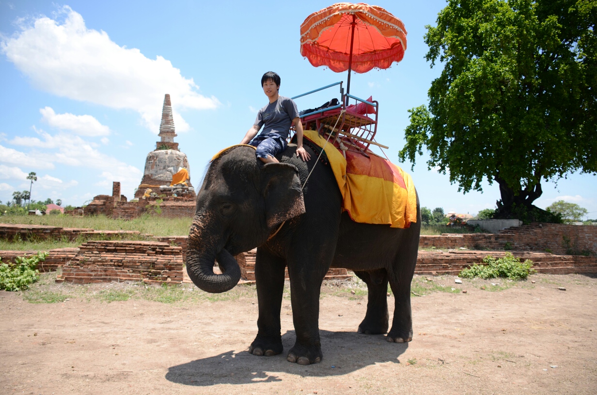 ゾウの頭に乗りました!