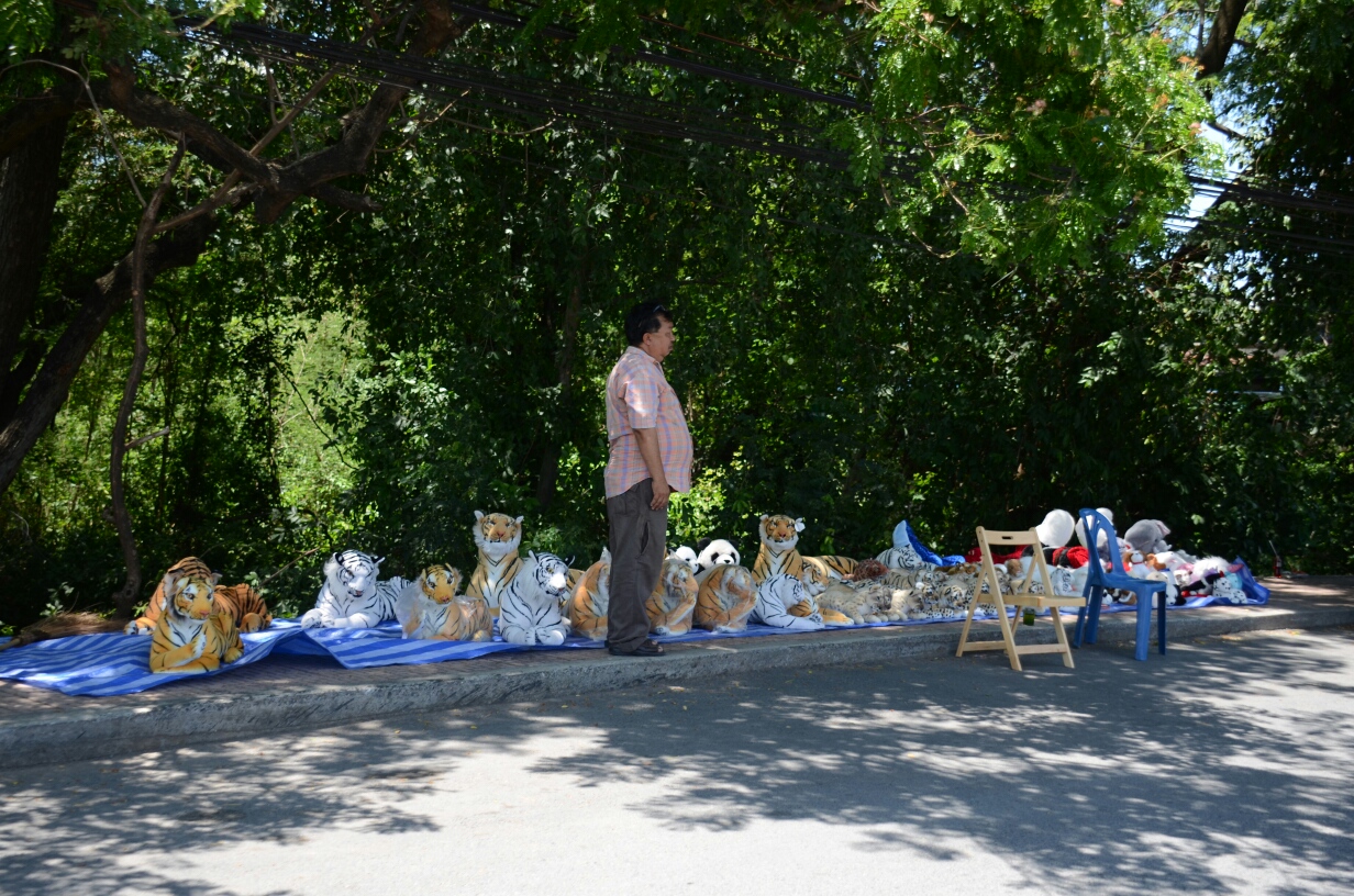 ↑途中見かけたトラのぬいぐるみを売るおっちゃん