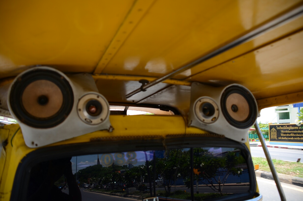 ↑トゥクトゥクの後部座席にはスピーカーがついており、サービスのつもりなのかポップなタイの音楽を流してくれました。